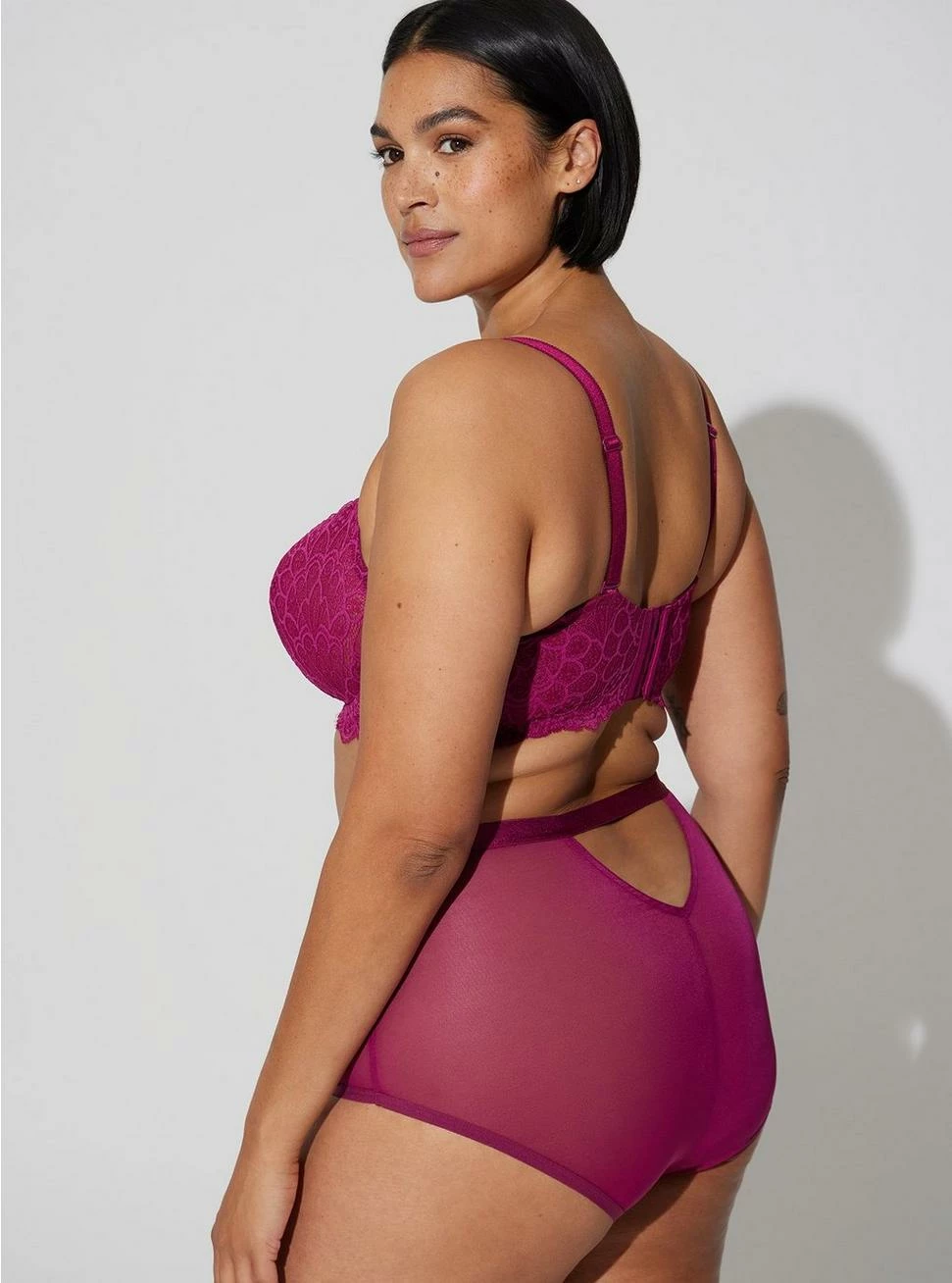 - Lace and mesh knit fabric.