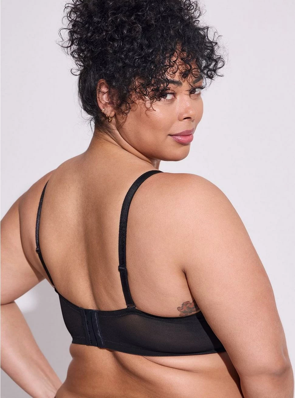 - Back hook-and-eye closure.