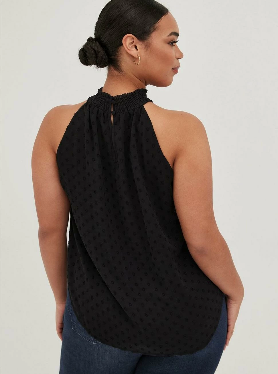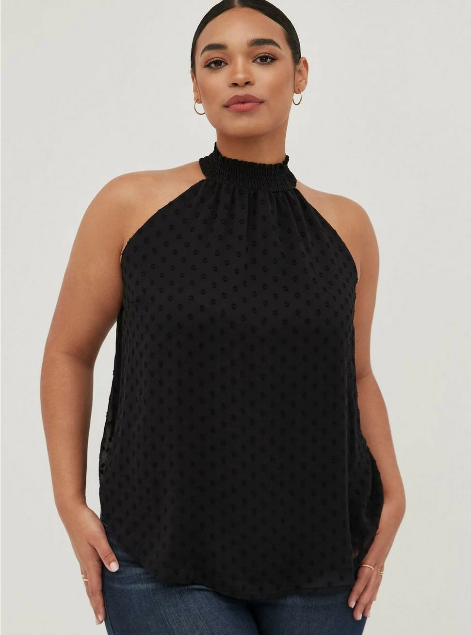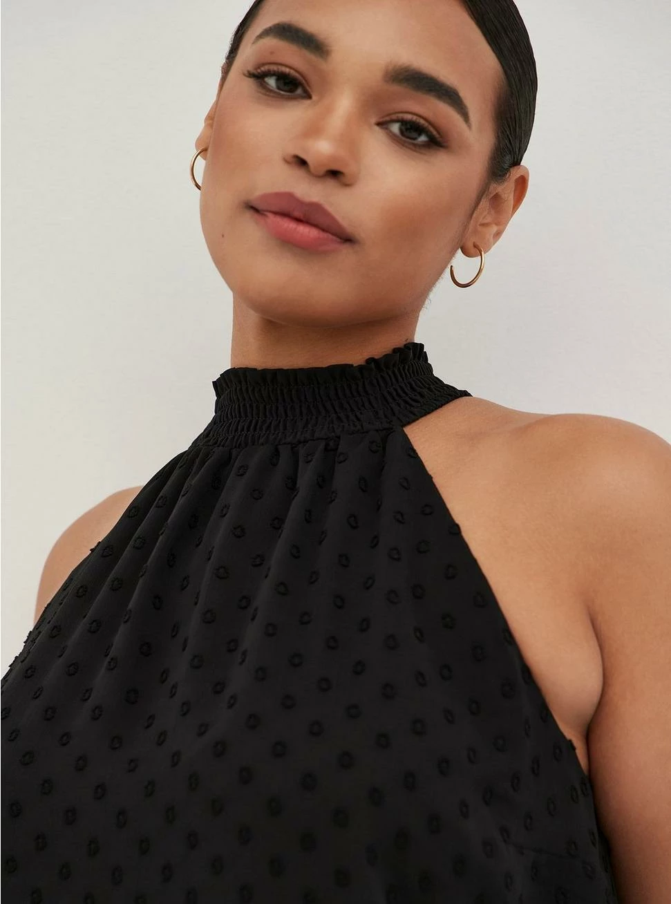 - Smocked mock halter neck.