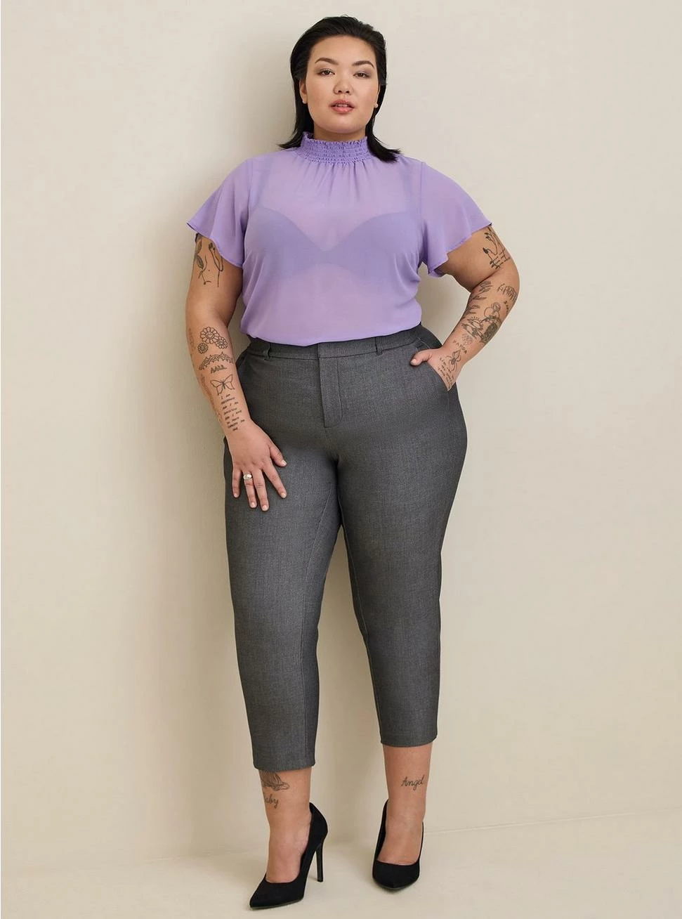 - Short flutter sleeves.