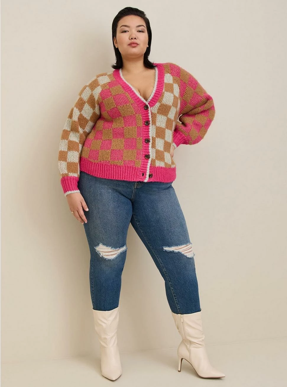 - Cardigan silhouette.