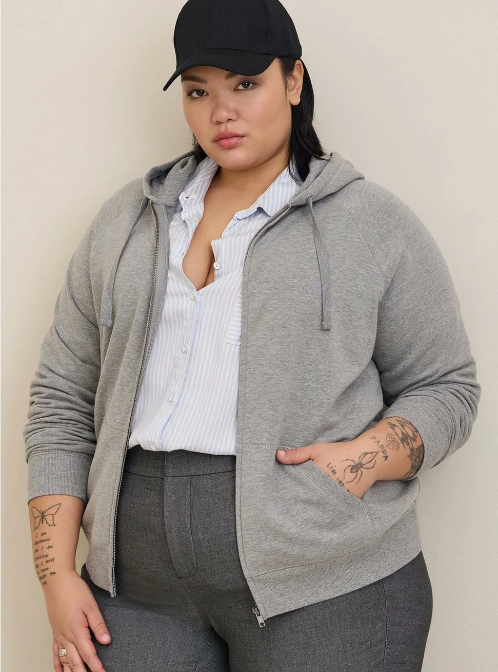 - Full zip front.