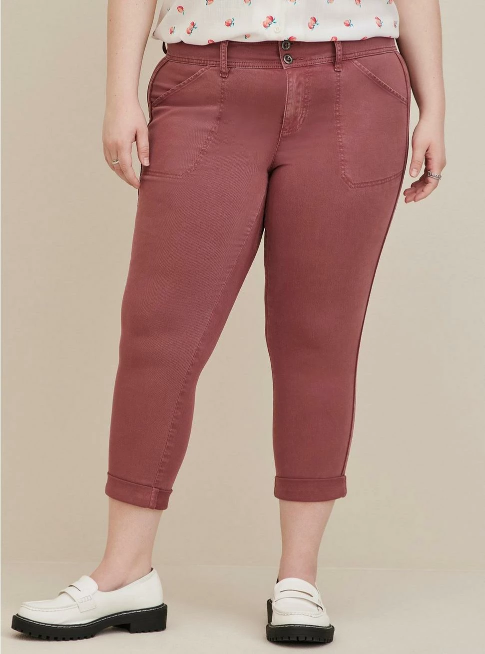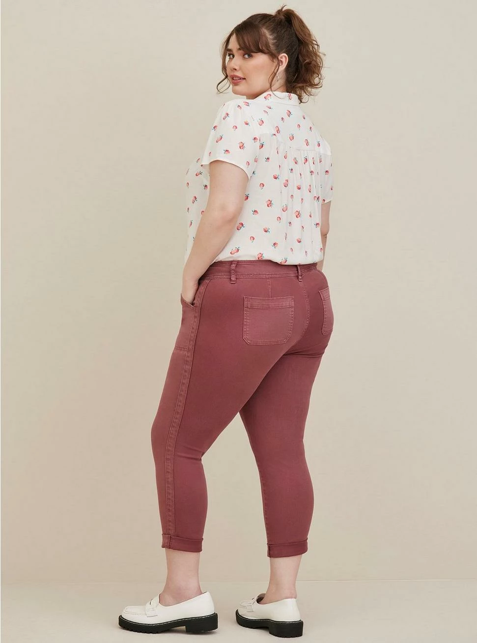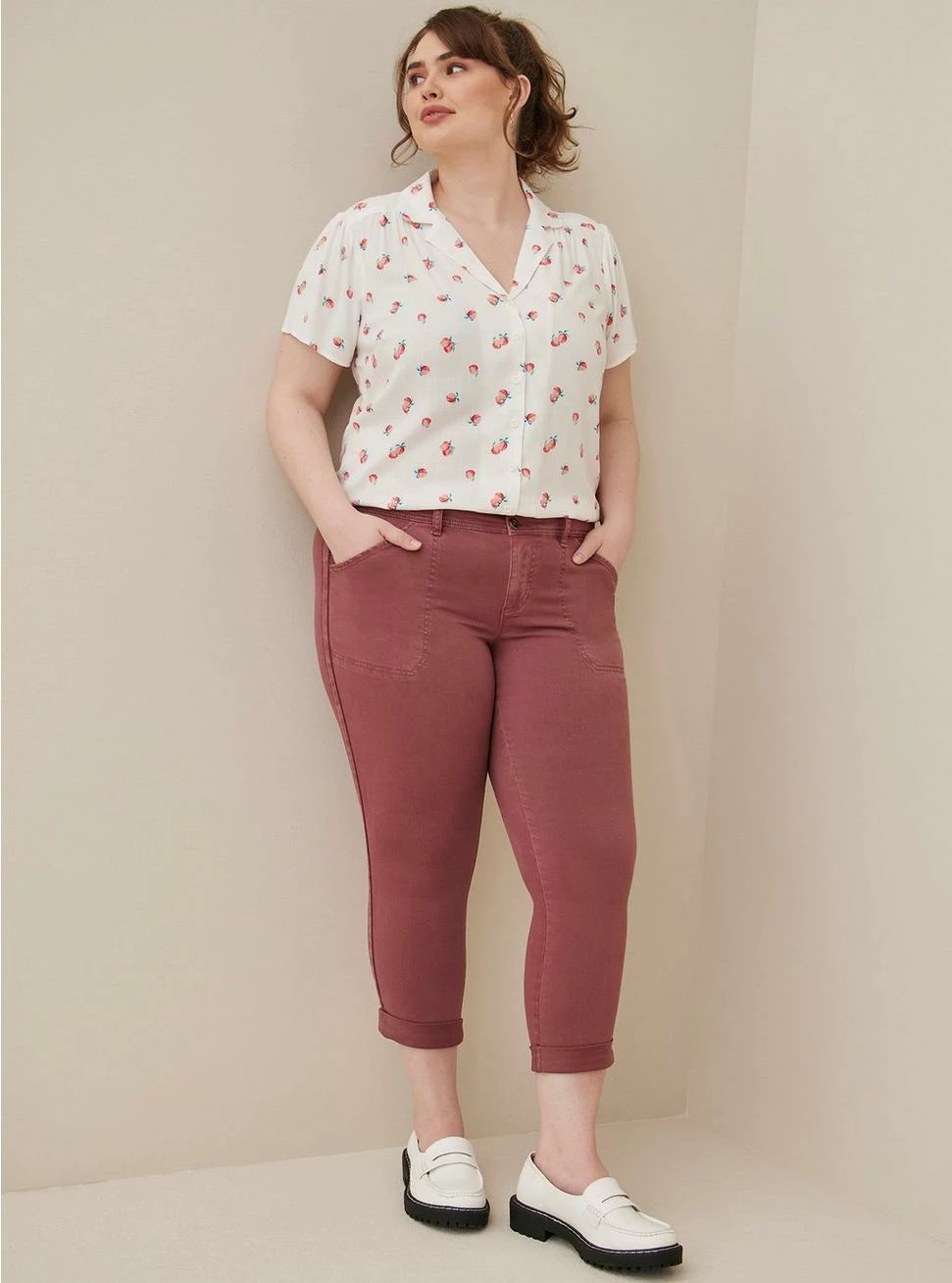 - Stretch twill woven fabric: A breathable, stretch fabric that’s easy to wear and care for (machine washable!).