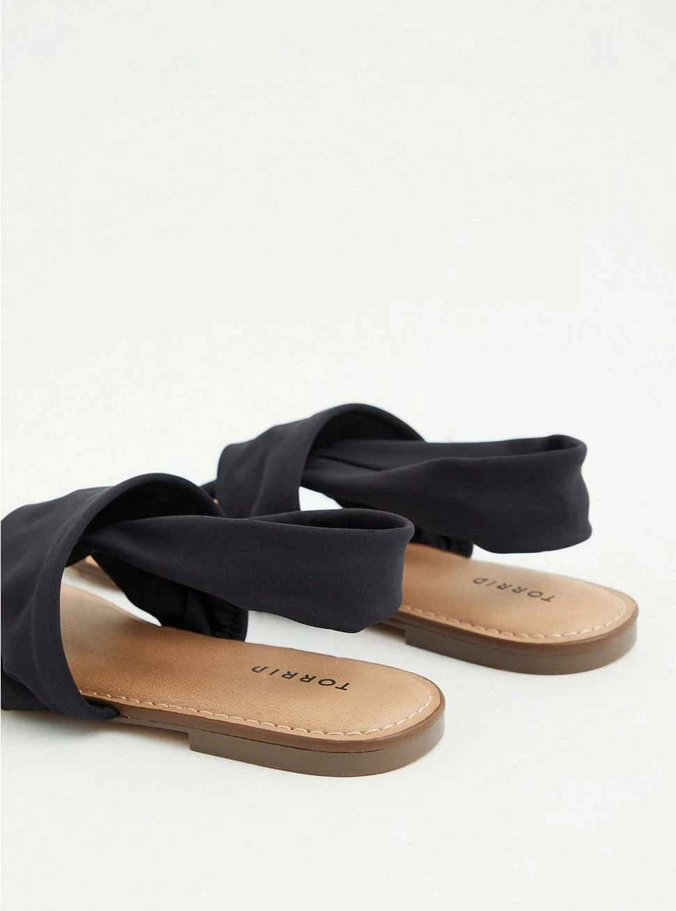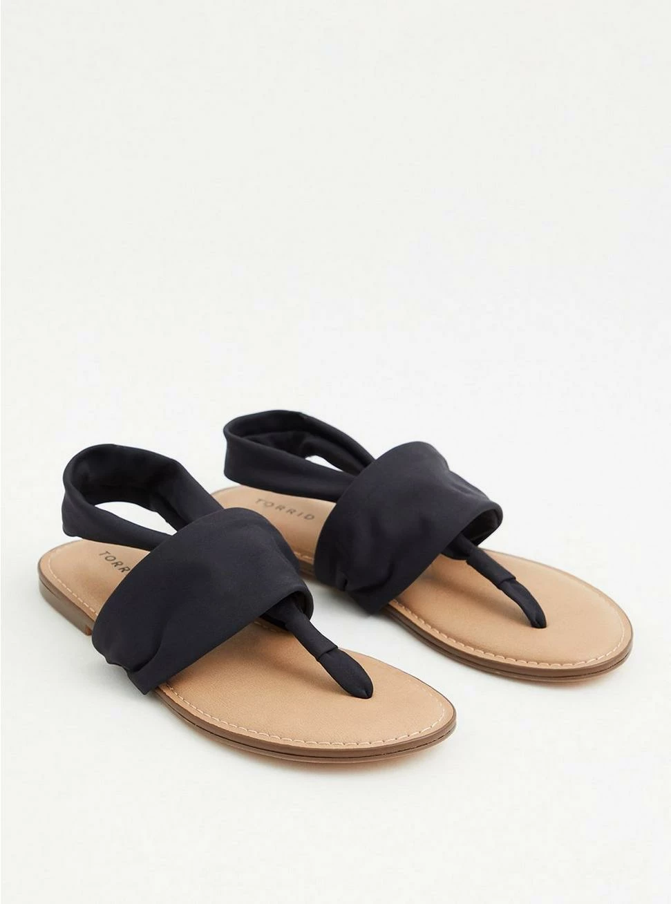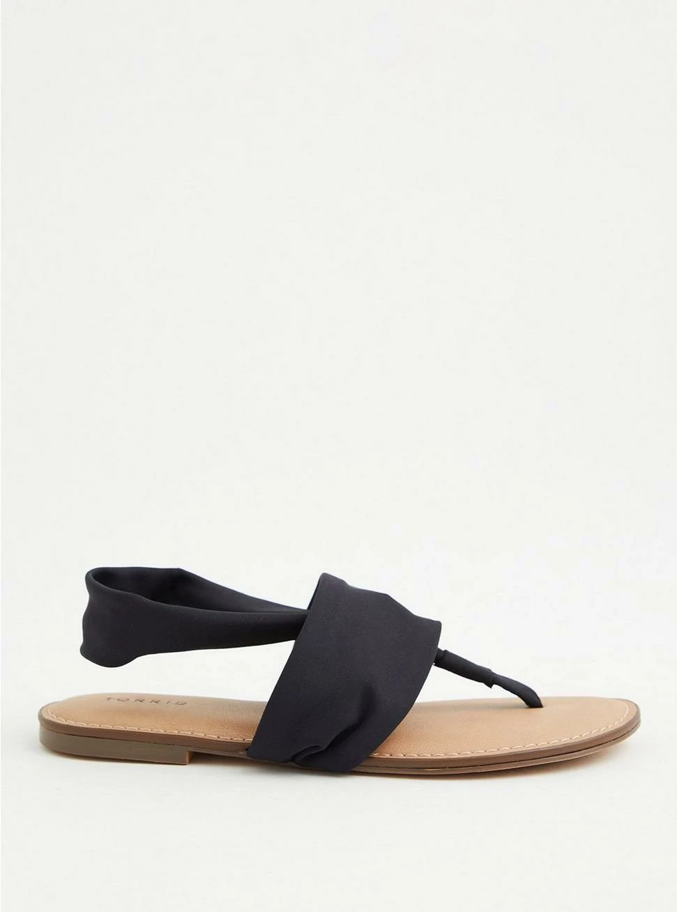 These classic T-strap sandals feature stretch fabric that gently wraps around your foot for maximum comfort and style.