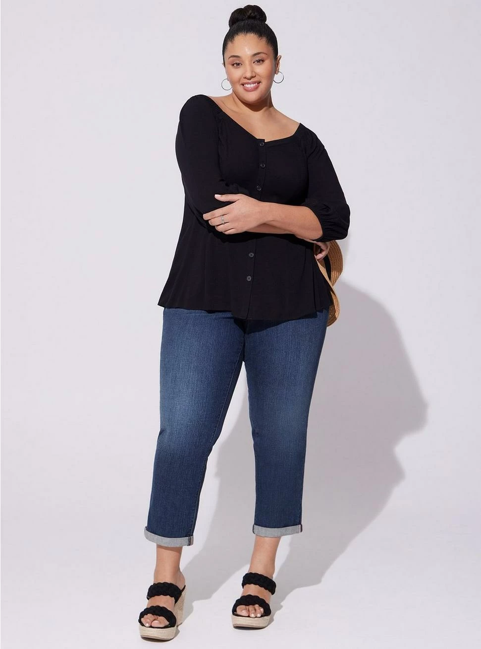 - Rayon Slub woven fabric: A soft, linen-like feel that drapes perfectly on the body with a touch of stretch. Perfect for when you want to be polished but comfy at the same time.