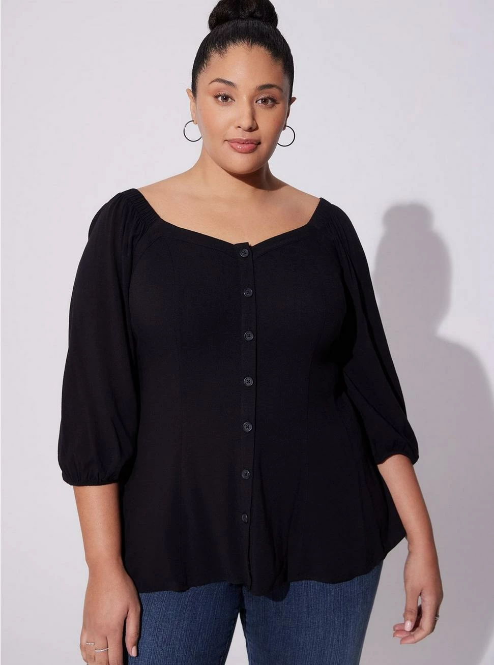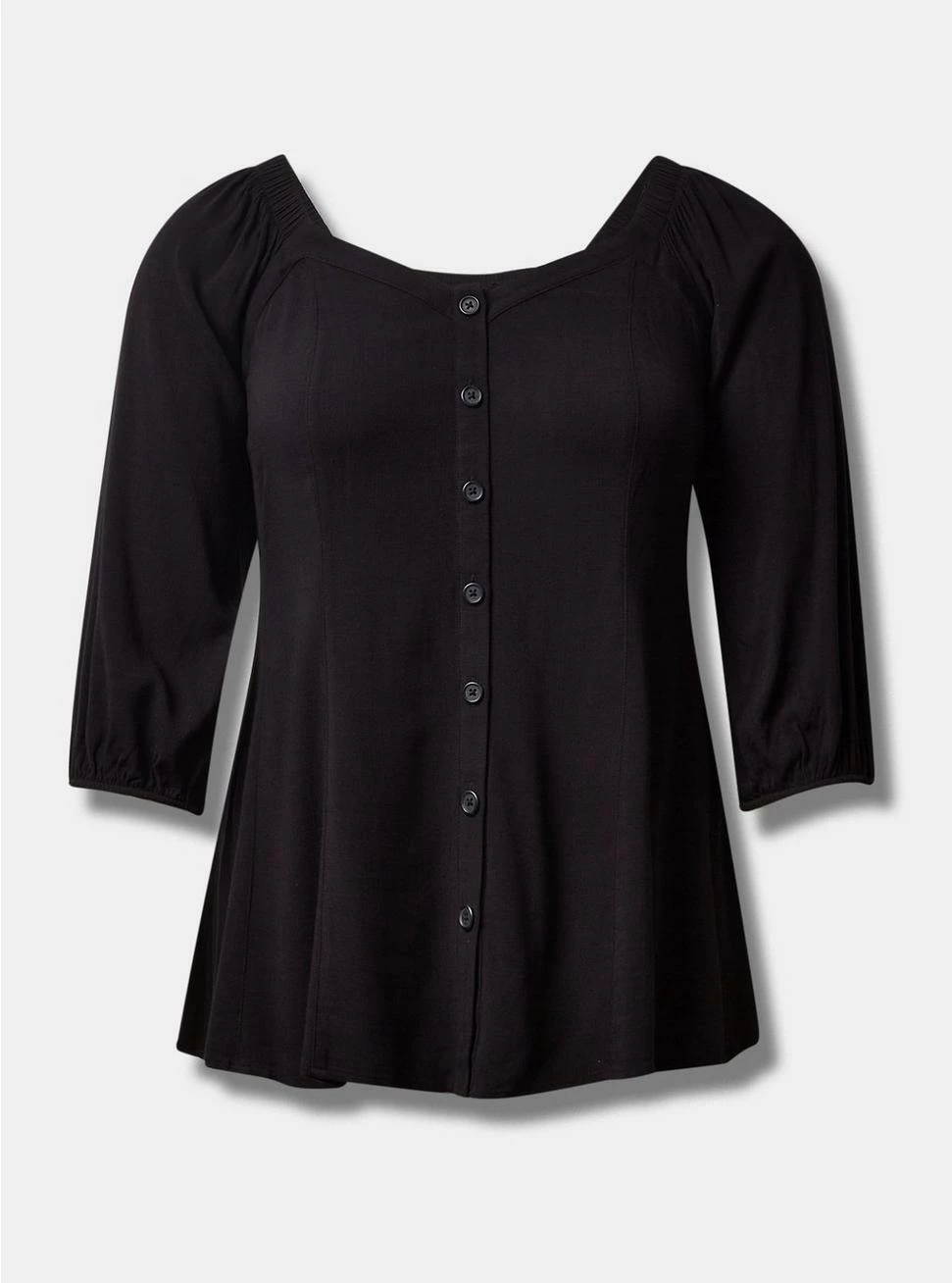 - Blouson sleeves.