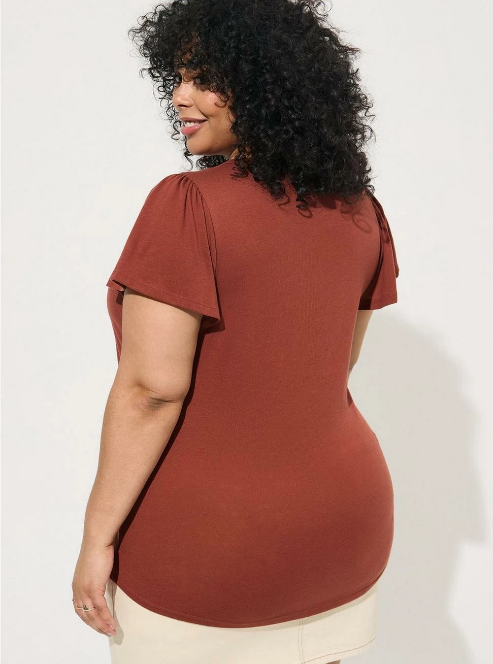 - Short flutter sleeves.
