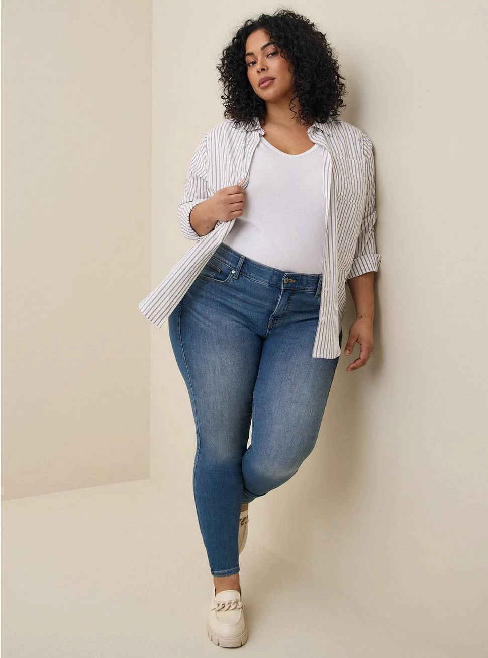 - Classic fit: Fitted up top, eased through the body.