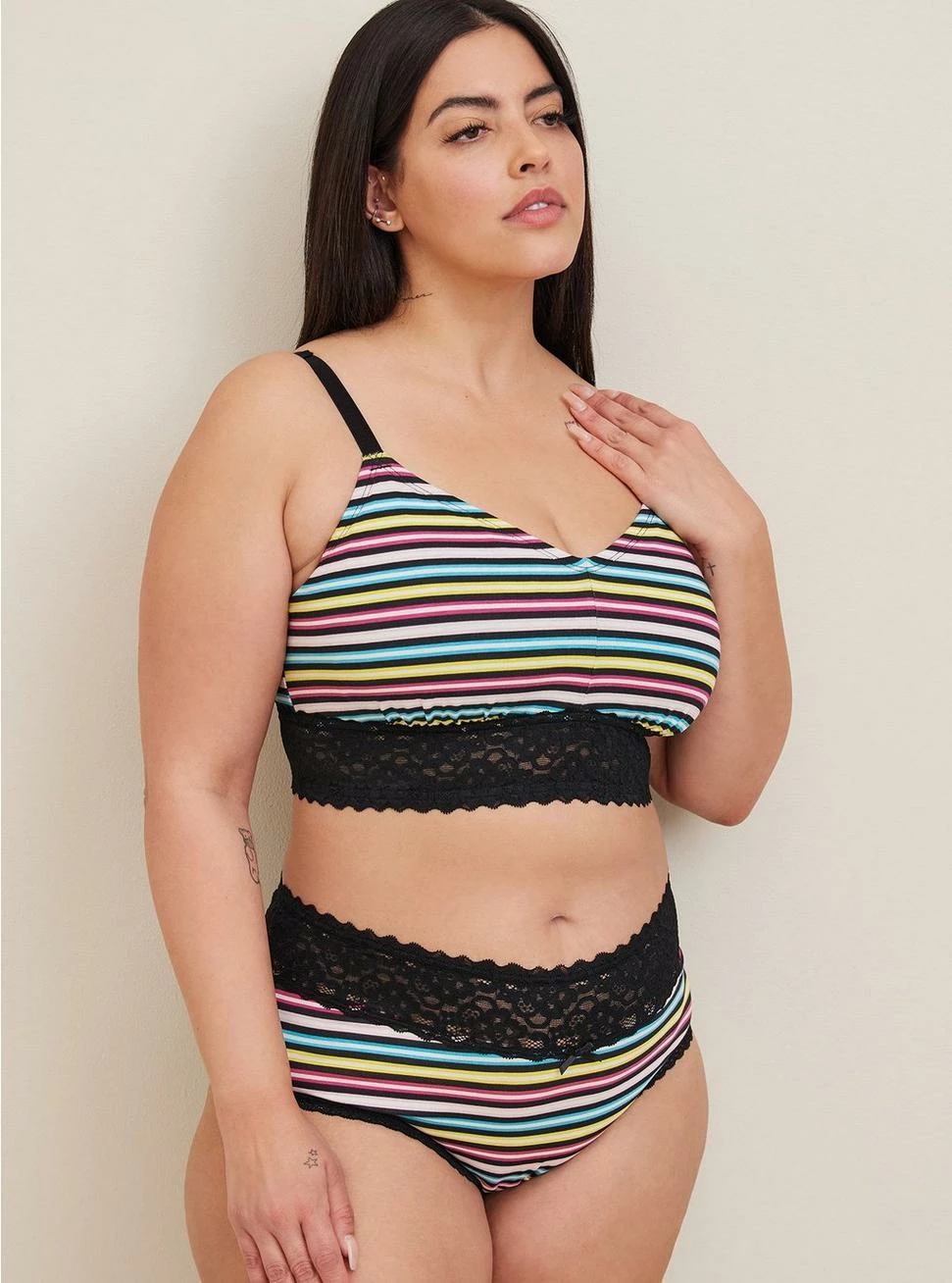 Lightly padded cups enhance your natural shape and profile in this sexy lace bralette that’s stretchy and comfortable.