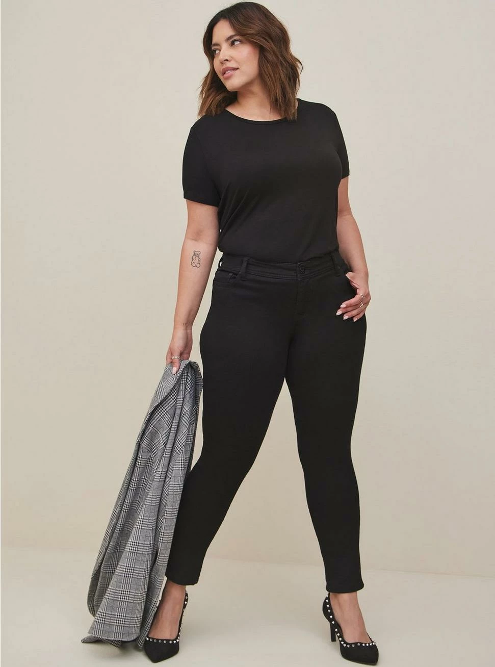 It’s everything you love about a skinny jean with a little extra “luxe” stretch at the waist and a soft sateen sheen.