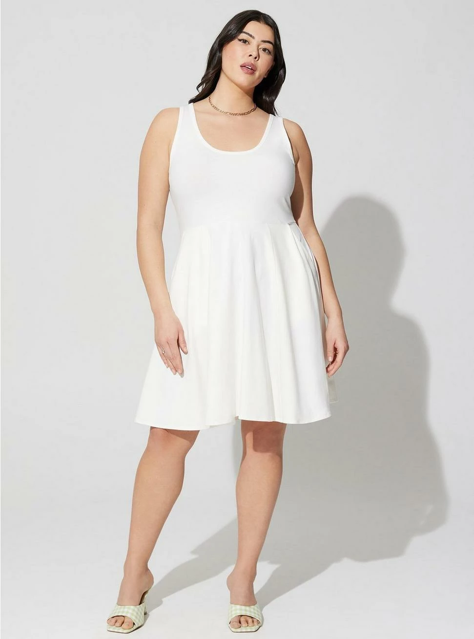 - Scoop neckline.