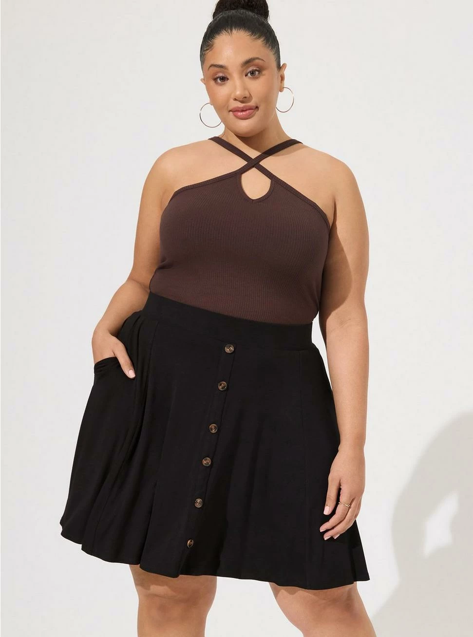 - Super Soft knit fabric: An incredibly soft, versatile knit that hugs close to the body.