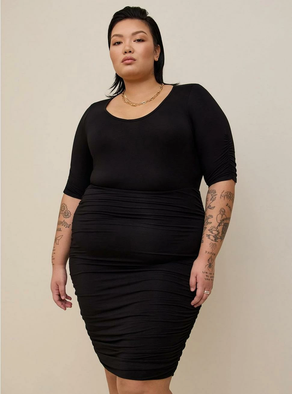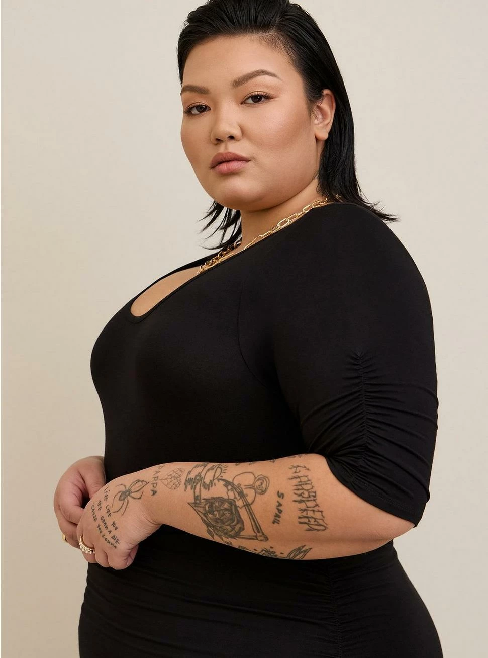 - Super Soft knit fabric: An incredibly soft, versatile knit that hugs close to the body.