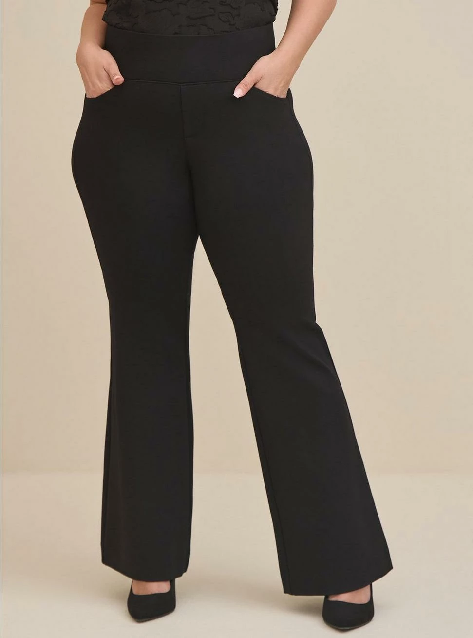 - Slim fit through the knee, then kicks out into a wide flare.