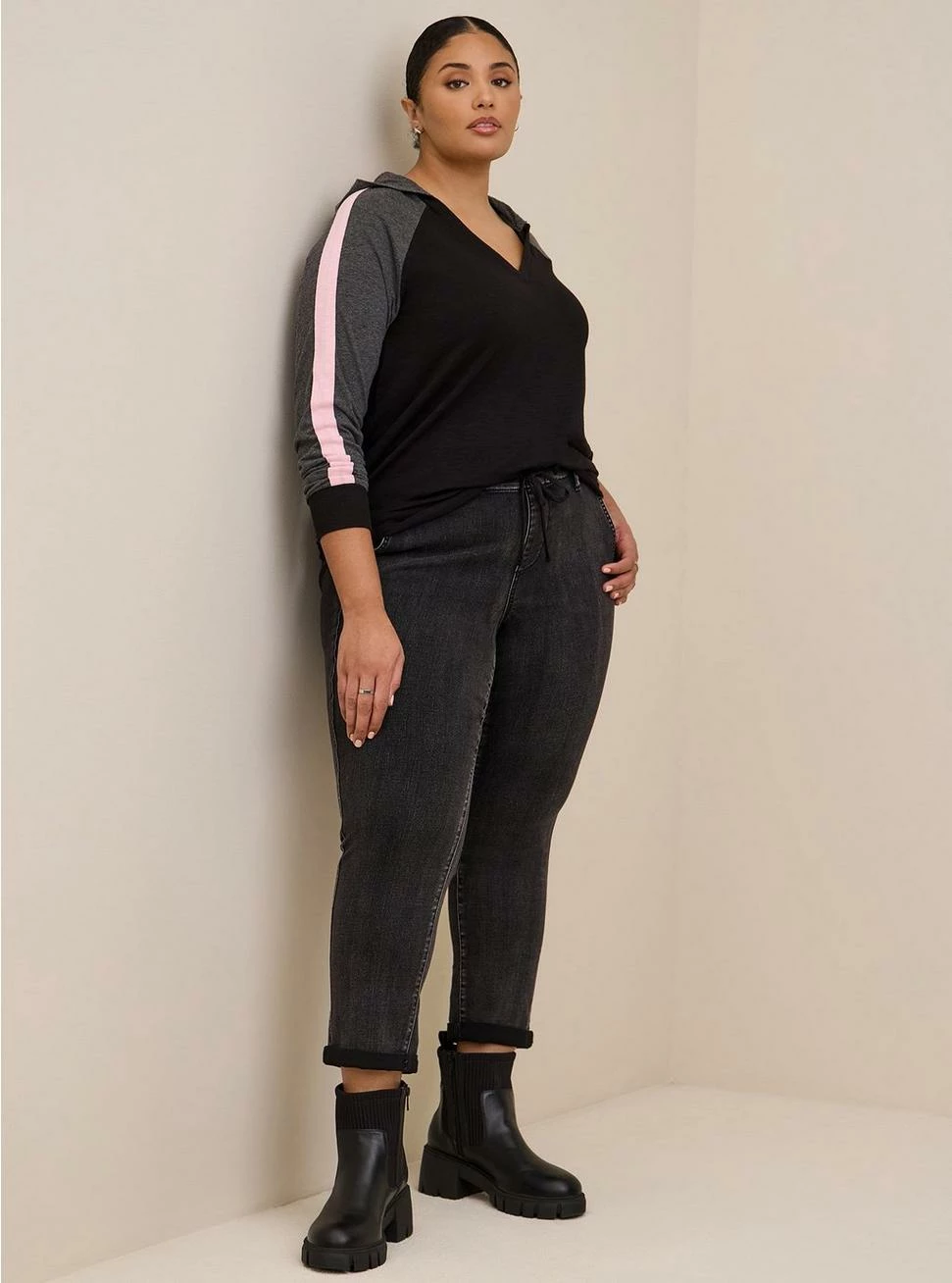 - Wear true-to-size or size up for a slouchier look.