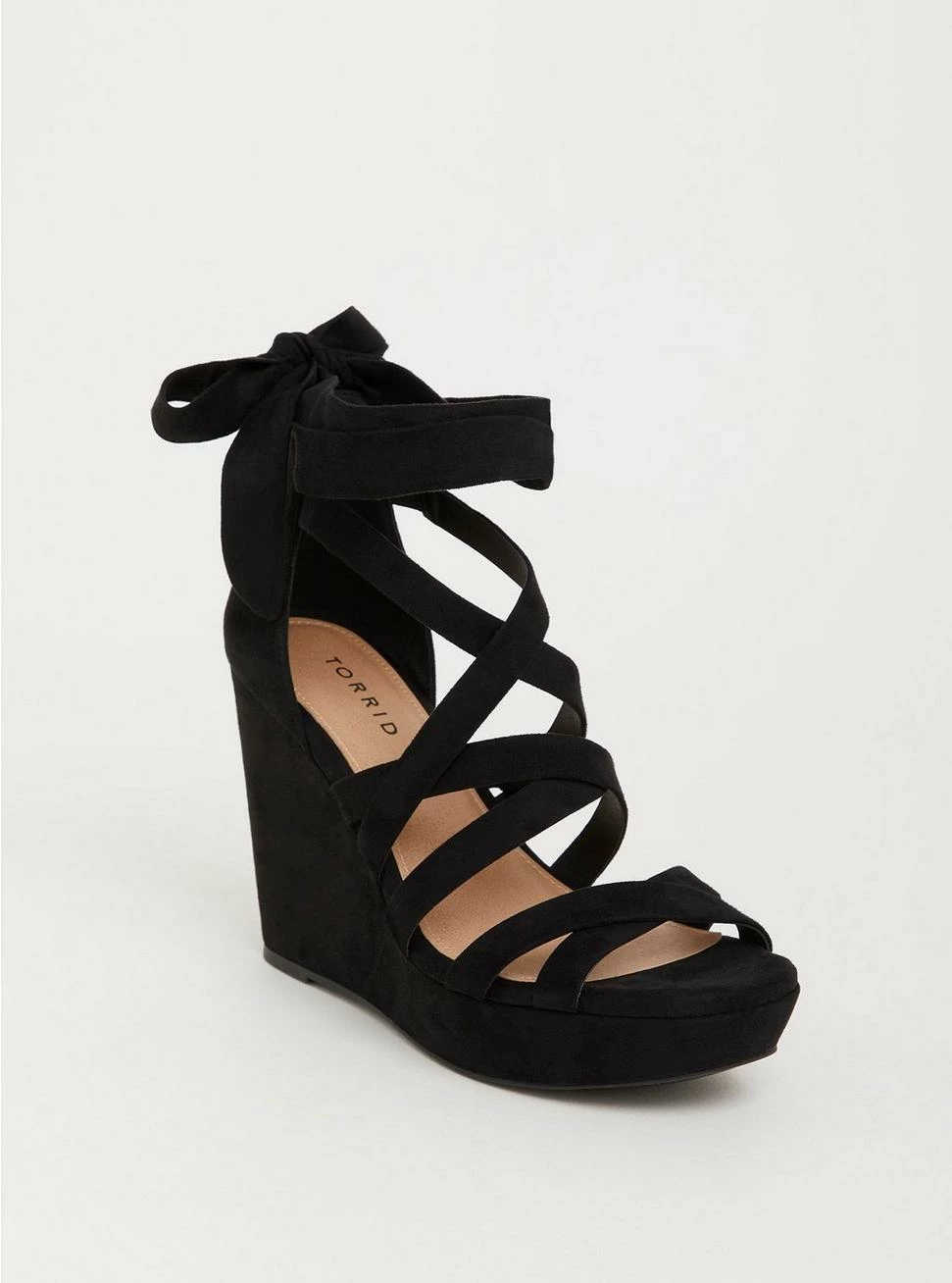 A classic wedge is given a trendy update with an ankle wrap design that allows you to tie to perfection.