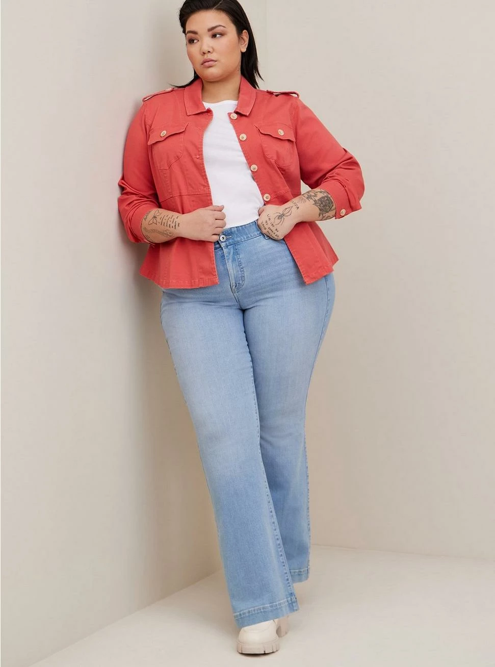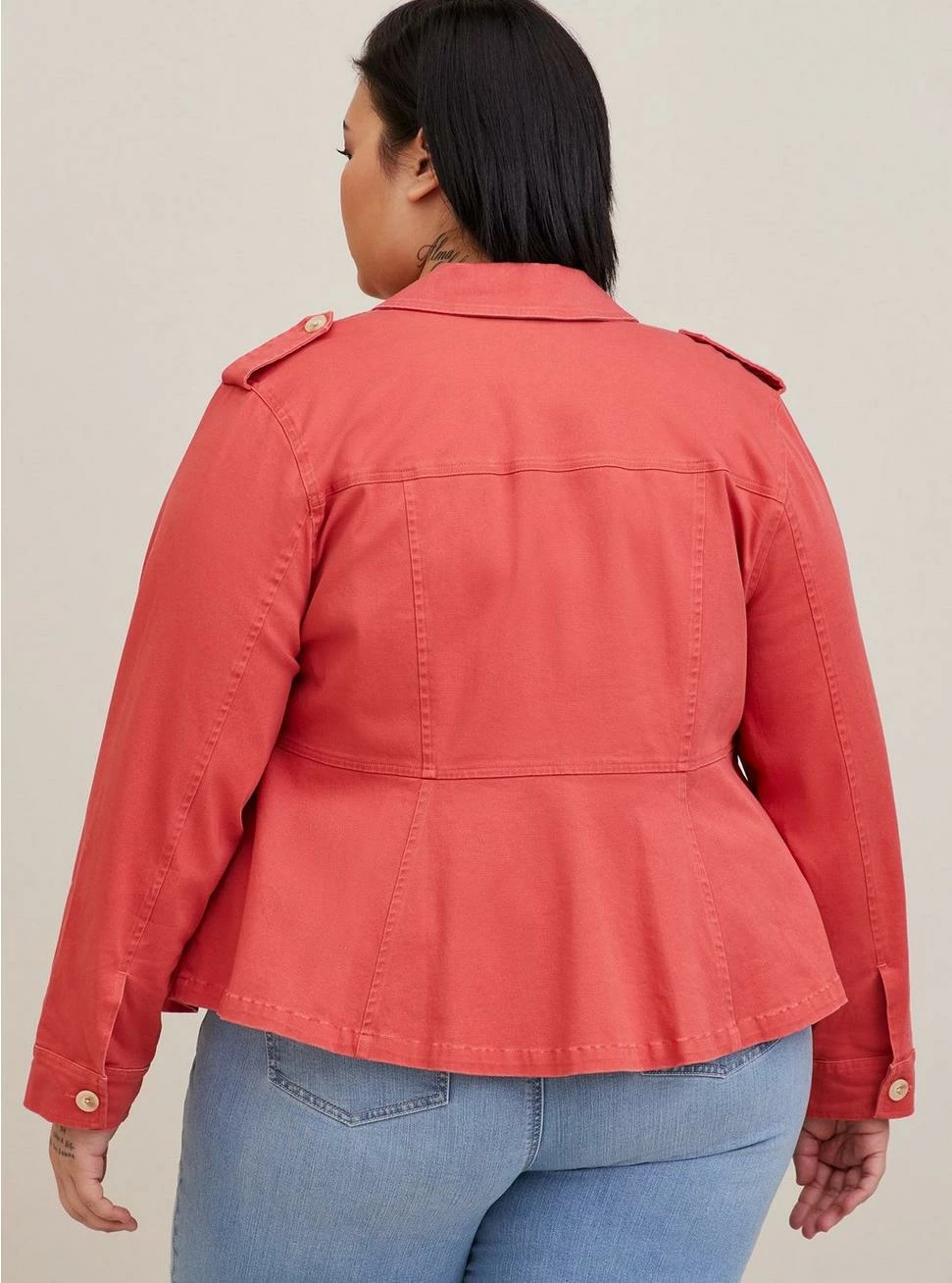 - Stretch twill woven fabric: A breathable, stretch fabric that’s easy to wear and care for (machine washable!).