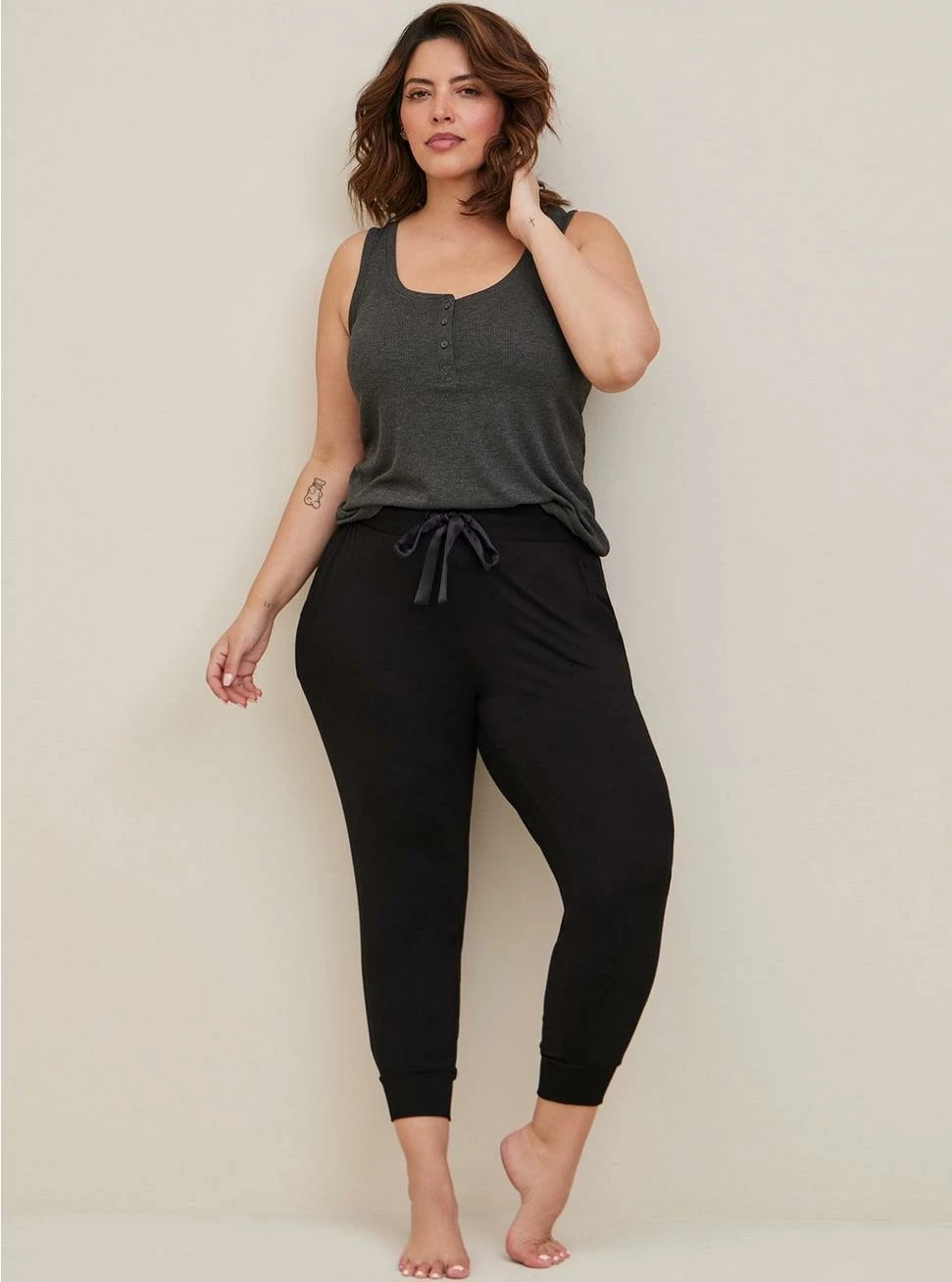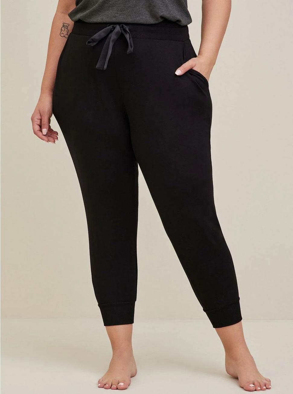 This pair of Super Soft cropped sleep joggers has a classic fit, ribbed cuffs, a drawstring waist, and functional pockets!