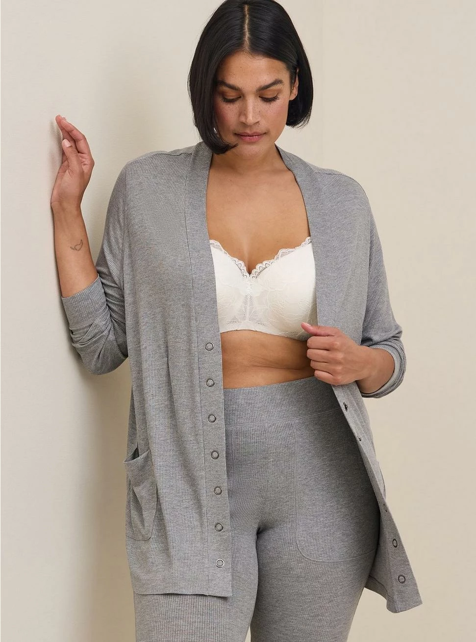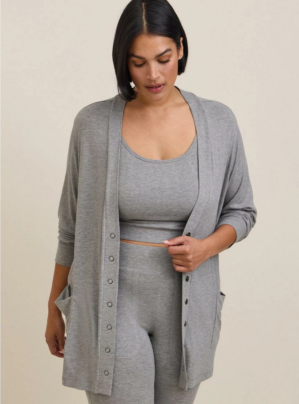 - Super Soft Rib knit fabric: An incredibly soft, versatile knit with a ribbed texture that hugs close to the body.