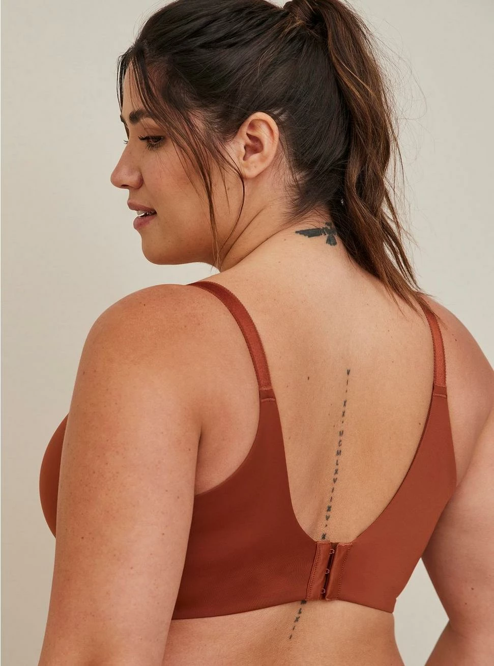 - Back hook-and-eye closure.