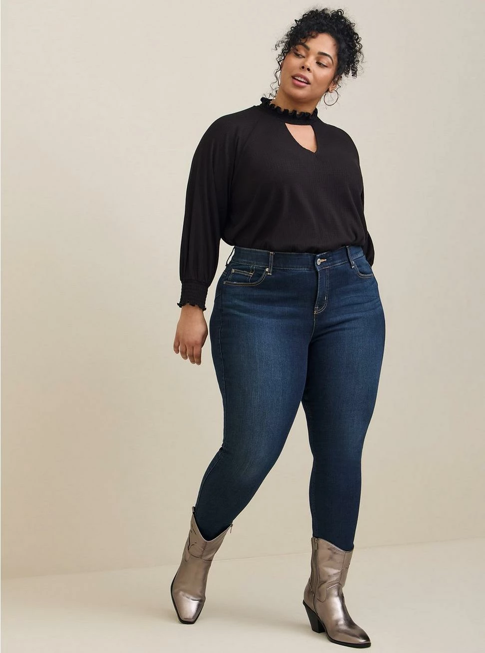 - High mock-turtle neckline.